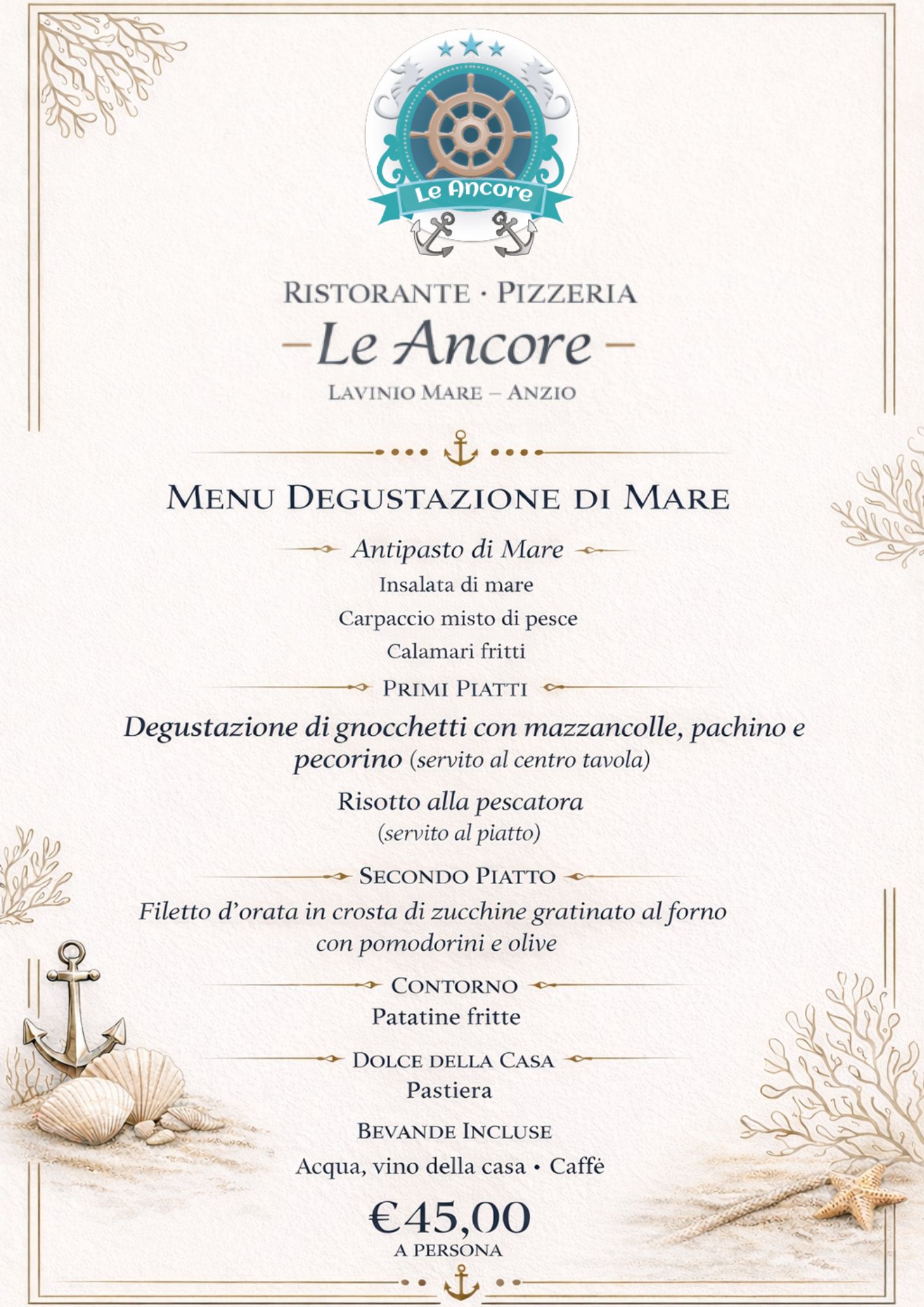 Nato dall’esperienza di Alessandro e Marina, a pochi passi dal centro di Lavinio Mare, Le Ancore offre un ottimo servizio di ristorazione.